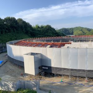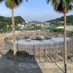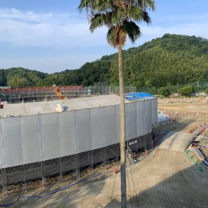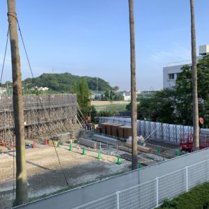 梅雨の晴れ間にトマス寮高校部から見た建設現場の様子です。