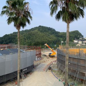 中学棟と高校棟のリングを繋ぐ教員棟の建設も始まりました。