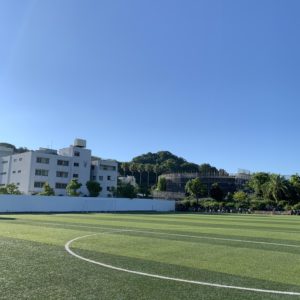 人工芝グラウンドからも本部棟の様子が見えるようになりました。