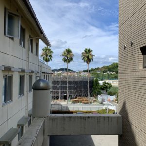 今回はドミニコ寮から見た新校舎(本部棟)です。