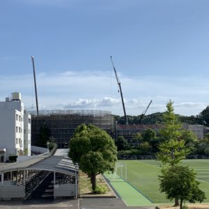 高Ⅱ D組で撮影した現校舎から見た新校舎の様子です。