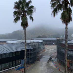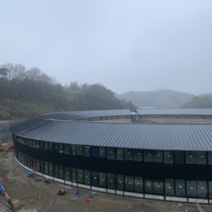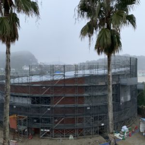 レンガ風の外壁工事が始まって本部棟の雰囲気が良く分かるようになりました。