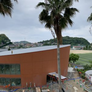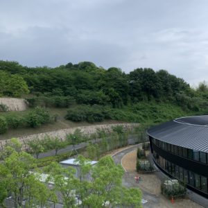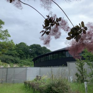 梅雨の曇り空、ドミニコ寮に卒業生が植樹したスモークツリーが綺麗ですね。