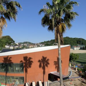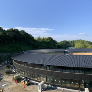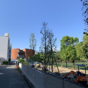 本部棟につながるアプローチも工事が進んで、新しく植えられた樹木がいい雰囲気です。