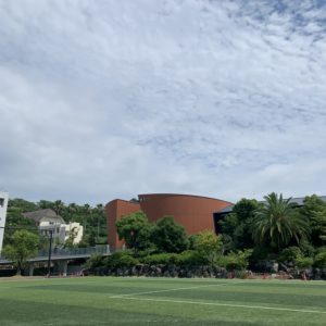 今日は人工芝グラウンドから見た新校舎の様子です。