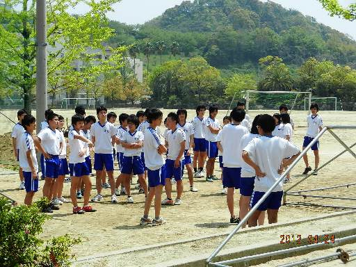 2時間目,グラウンドでは,中1d組の生徒たちが,スターターの旗の合図で「100m走」の練習をしていました。