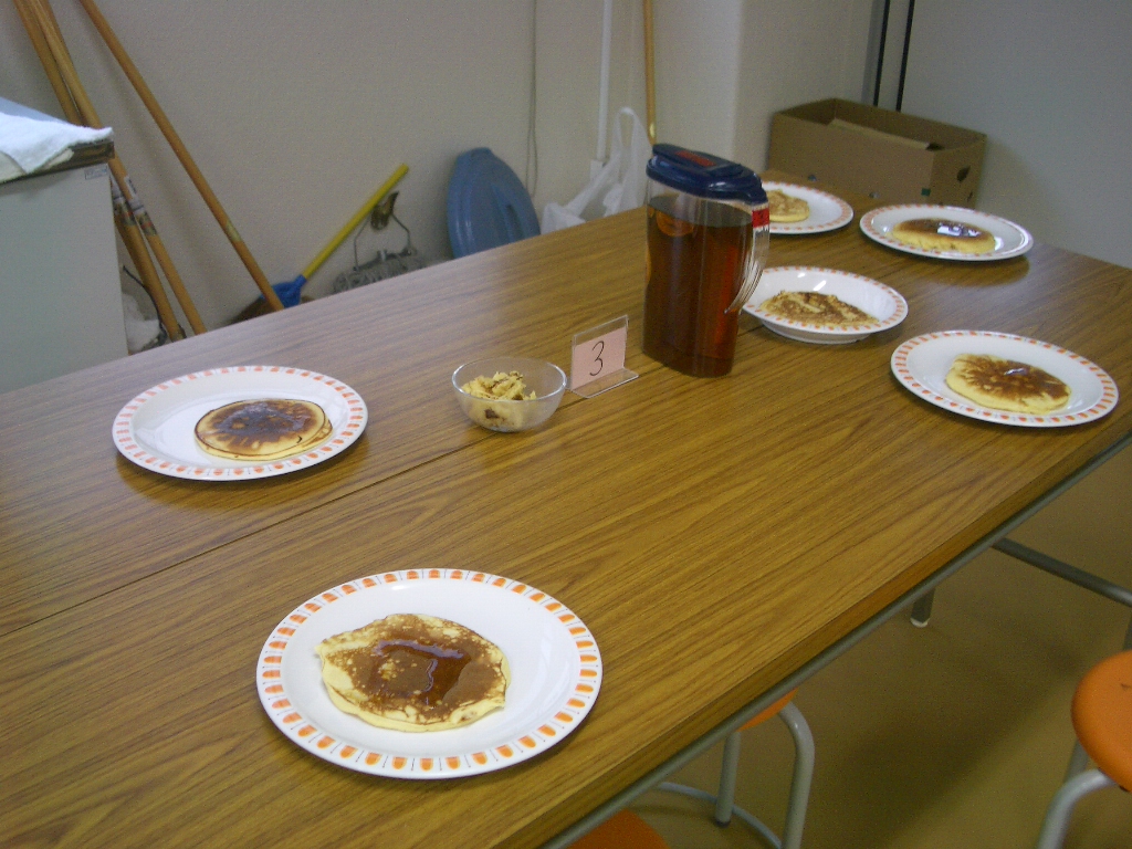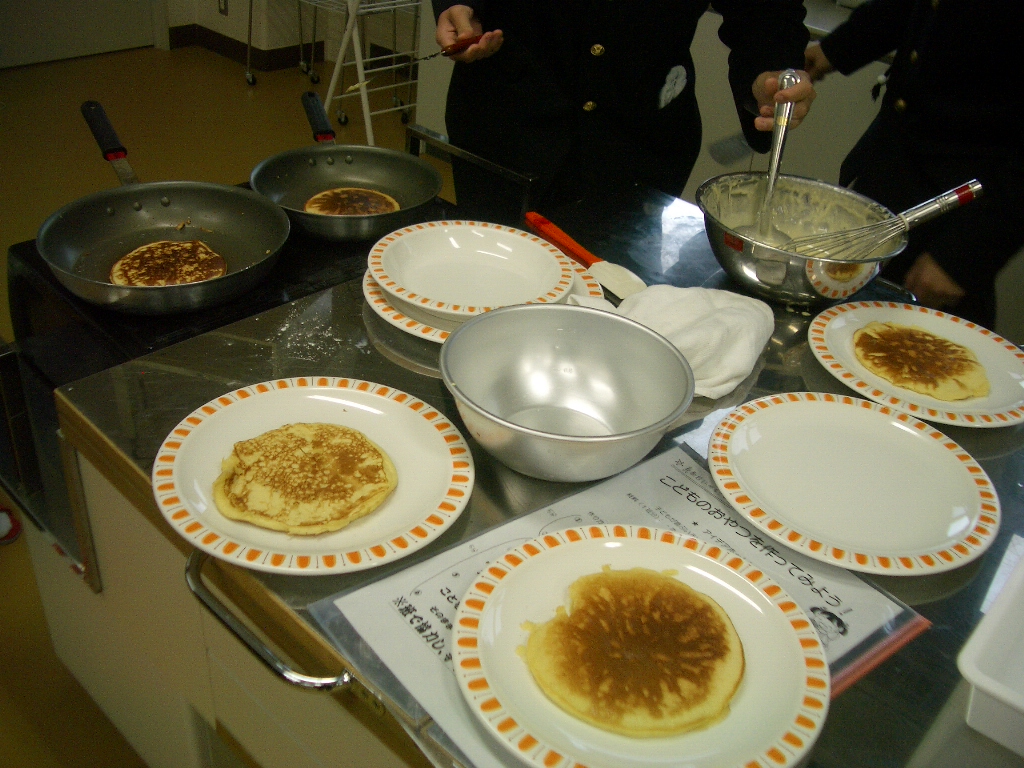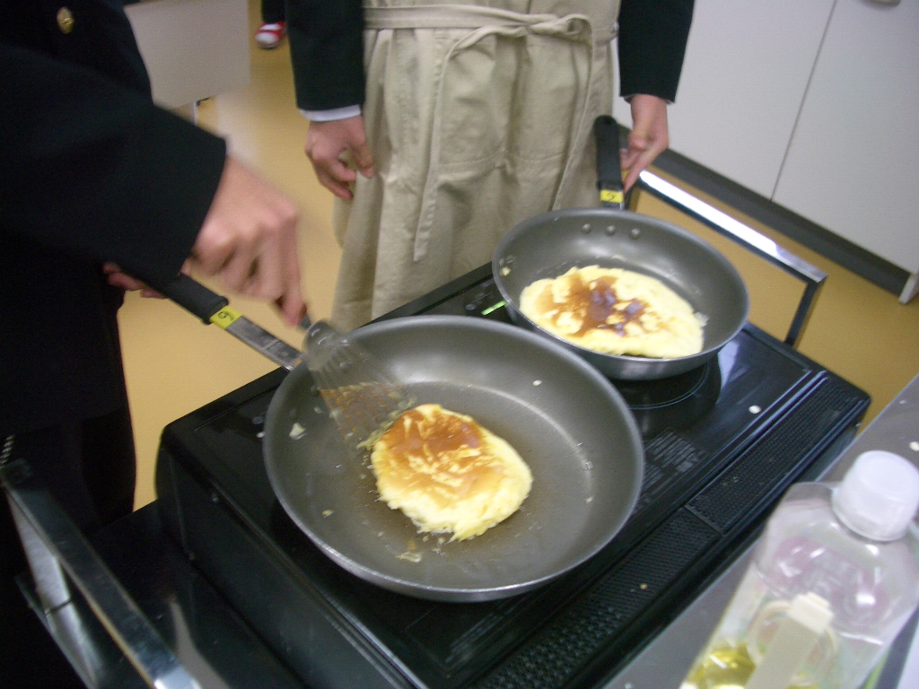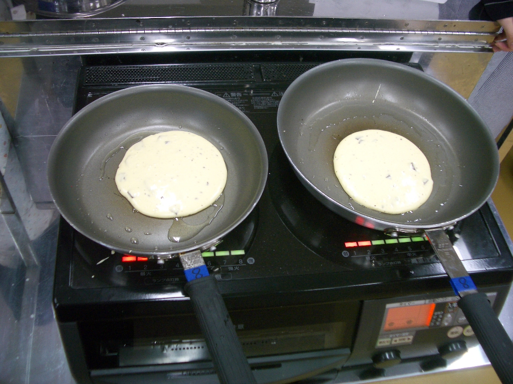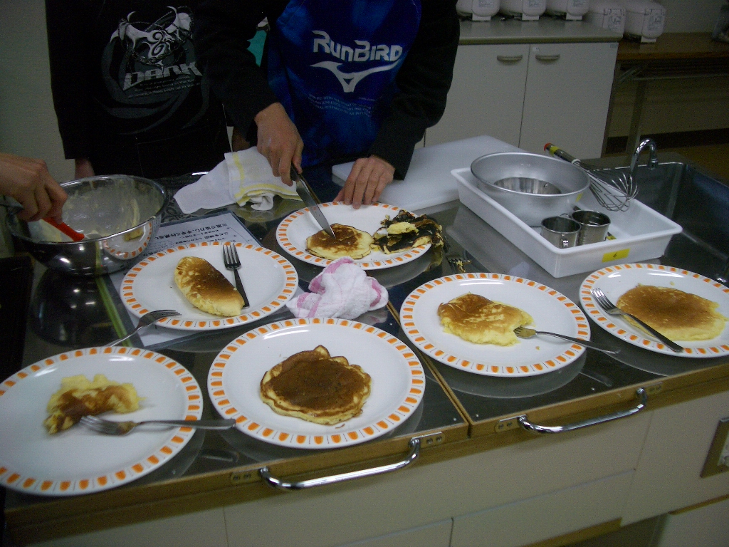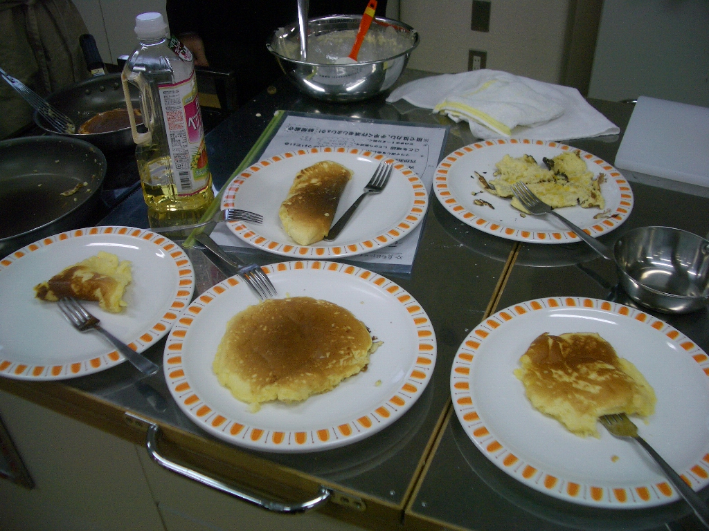 少し生っぽい感じのものや焼きすぎたもの、オムレツ風に丸めたものやひっくり返し損ねて形が崩れてしまったものなど、いろいろな「ホットケーキ」ができました。