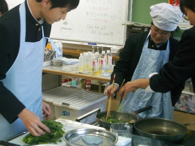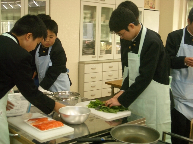 1時間目、中2c(担任:砂田良彦先生)の家庭科実習(担当:大野愛先生)を訪ねました。