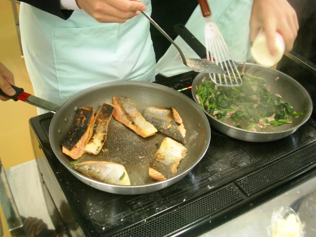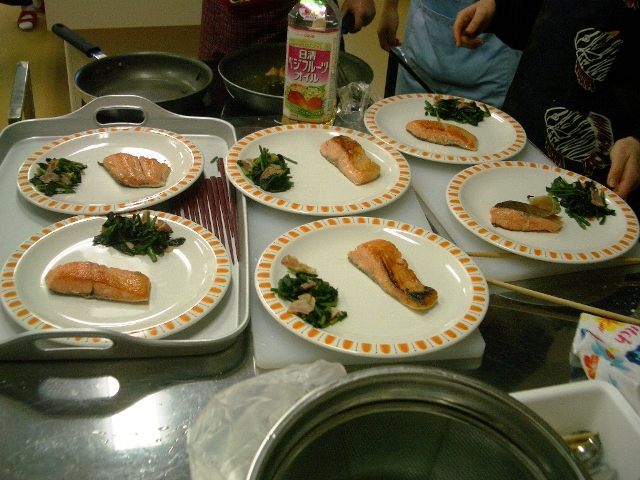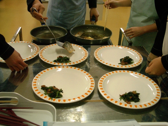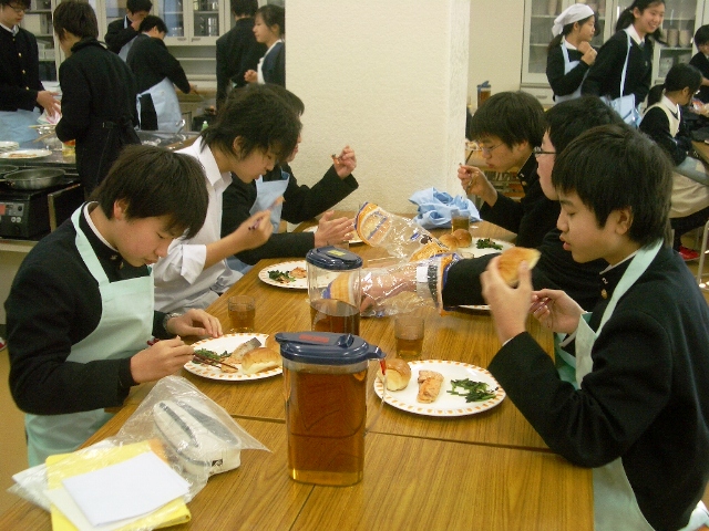 マニュアル通りで見た目も美しい班、調味料や作り方がちょっとアバウトな班・・・いろいろでしたが、本当に楽しそうにつくって食べていました。