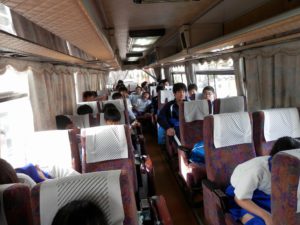 前日の雨も上がり、学校からバスで目的地へ向かいます。