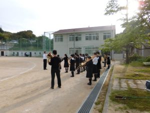 吹奏楽部がファンファーレ等の練習を行っていました。