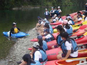 初めに、指導員の方に乗り方や漕ぎ方、安全に楽しむためにレクチャーを受けます。