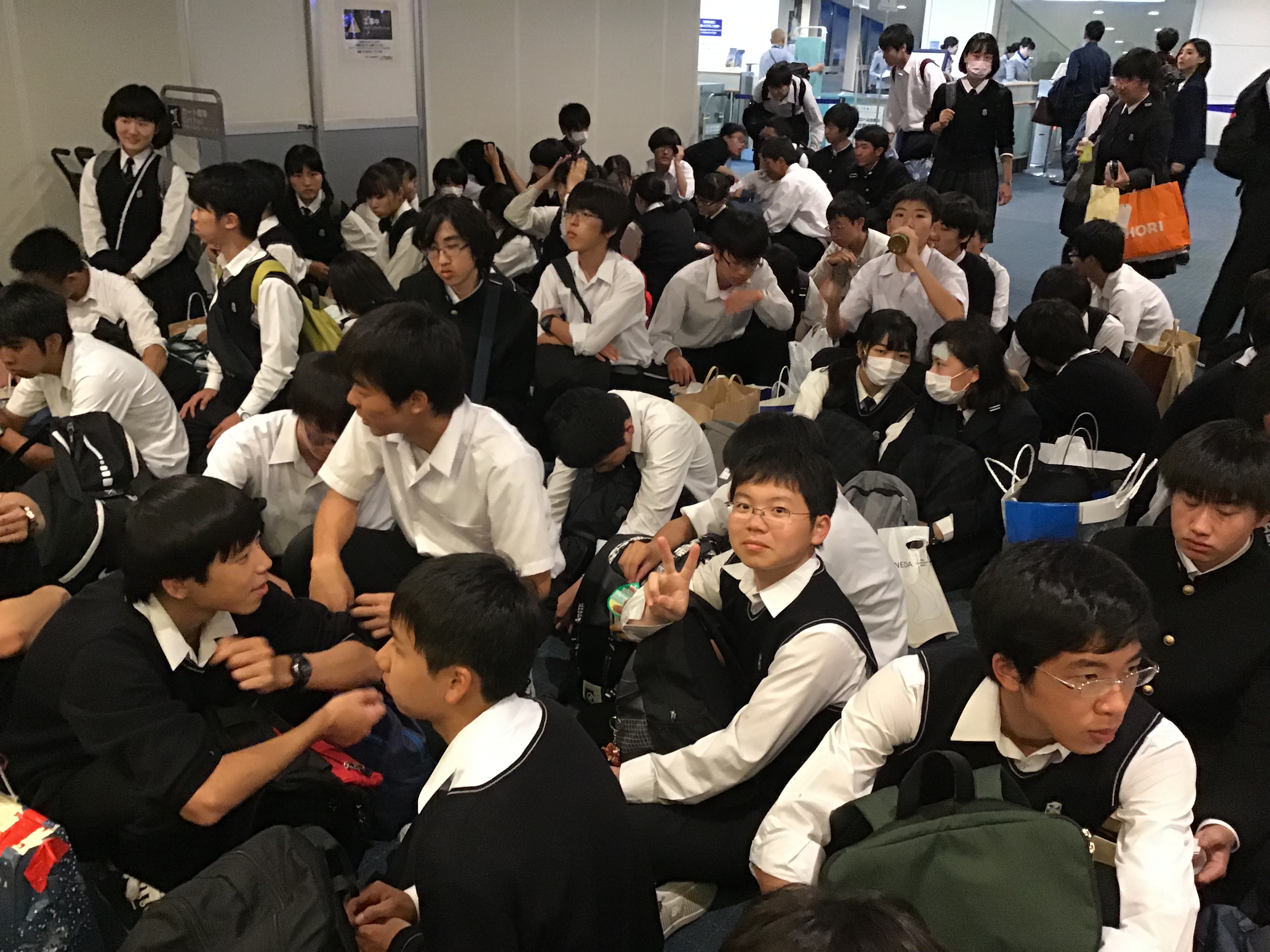 19時50分羽田空港発⇒21時20分松山空港着に変更になりました。松山空港,ならびに学校にお出迎えされます保護者の方はご注意ください。