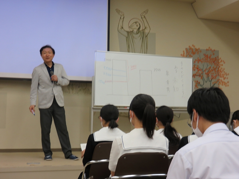 20期生の泉幸男さんが来校、ドミニカンセンターで「進路選択」についてご講演いただきました。