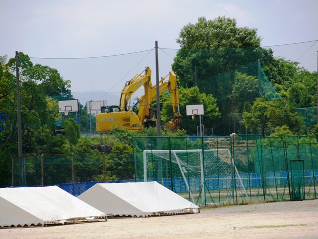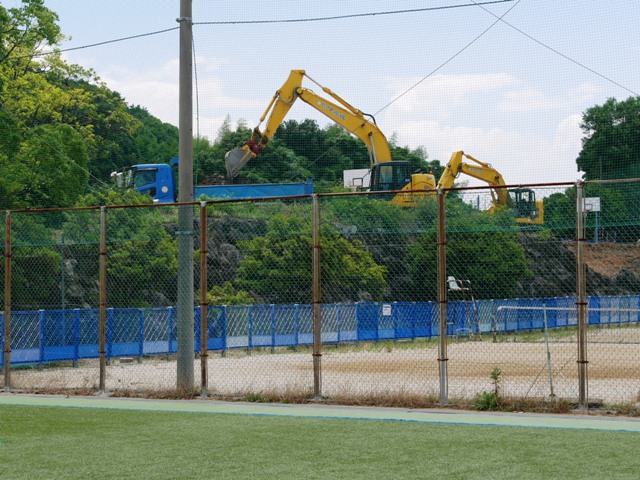 重機2台が2グラの上に陣取って、地面を掘りまくっていた。