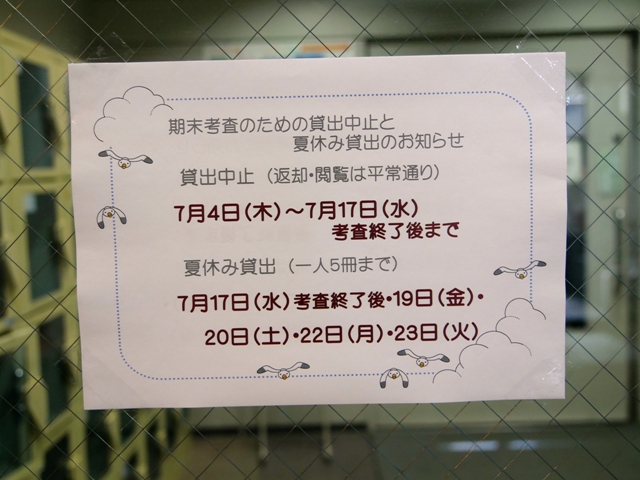 図書館にも夏休みが近づいている。期末試験の後は、特別貸出がある。