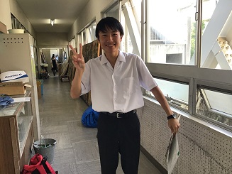 「文化祭来てくださ~い」と汗だくで笑顔。