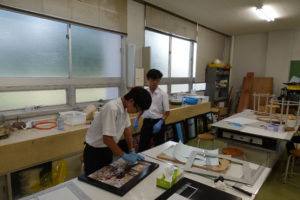 同じく生物実験室で、写真部が展示作品を作成していました。