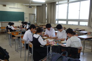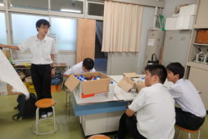 生物実験室では、自然探究部が文化祭で配布する部誌の作成と様々な実験の準備をしていました。