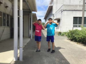 疲れていると思いますが、カメラを向けると、笑顔でピースです。