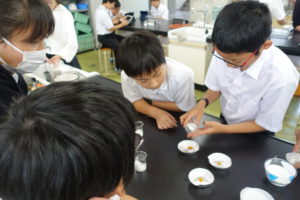 水溶液にしてリトマス紙につける班など、様々な手順を行っていました。
