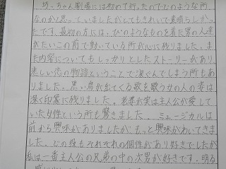ラヴ・ロマンス&コメディに別子銅山の煙害問題をからめた社会派(?)なストーリー、ソウルフルな歌を交えたミュージカルに、生徒の心にはそれぞれに響くところがあったようです。