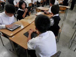他の生徒の自己紹介に興味津々です。