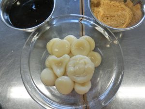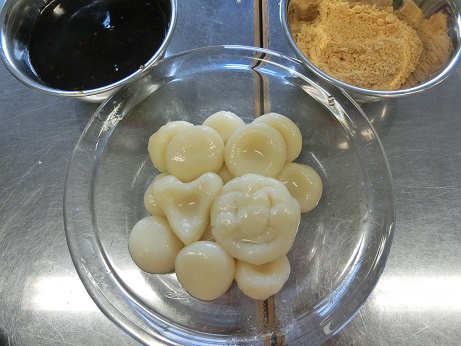 初めてなので、家庭科室の使い方や、50分間の調理実習の要領を得るために、簡単ですが、白玉だんごを作りました。