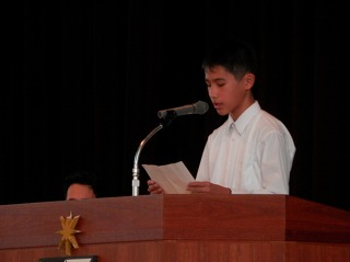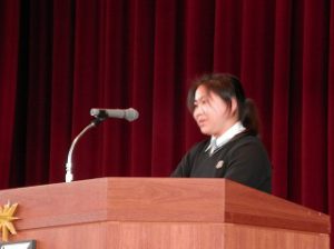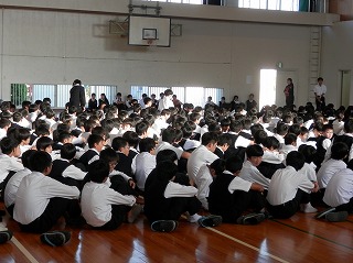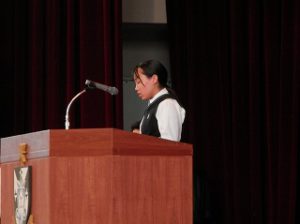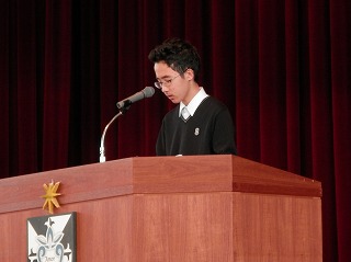 本日7限LHRの時間に、来年度の中学生徒会の会長および副会長を決めるための演説会が行われました。