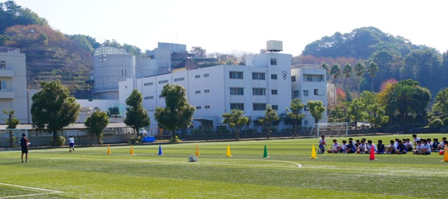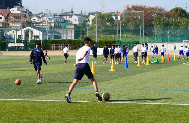 グランドでは体育の授業でサッカーの練習をやっていた。