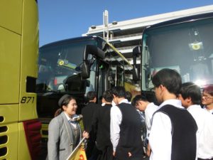 さっそく、はとバスのガイドさんたちにお出迎えをしていただきました。