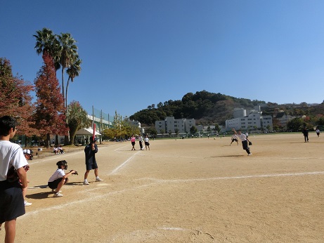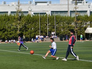 中1~3まで、バスケットボール、ソフトボール、サッカーに分かれて競いました。
