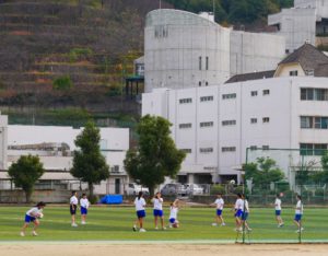 3時間目、グランドで体育の授業をやっていました。天気は晴です。