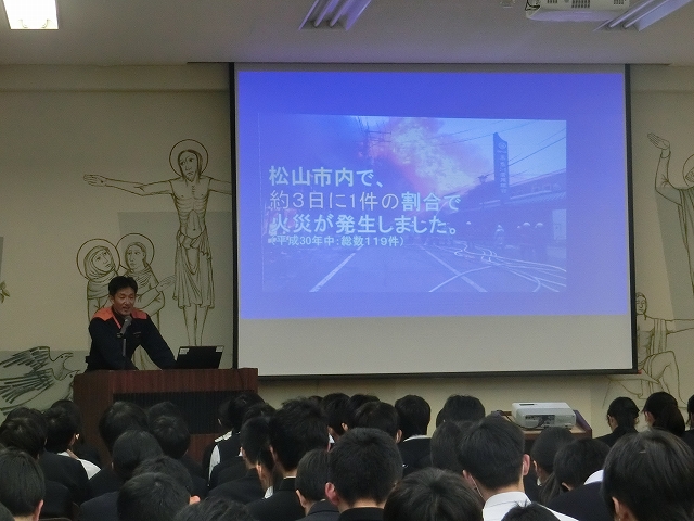 松山中央消防署の現役の消防士さんたちが来てくださいました。