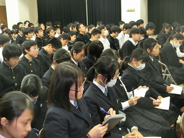 生徒たちもメモを取るなどして、きちんと話を聴いていました。