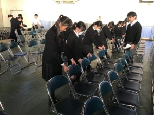 各行事の椅子並べ、椅子片付けは中2、3が担当します。