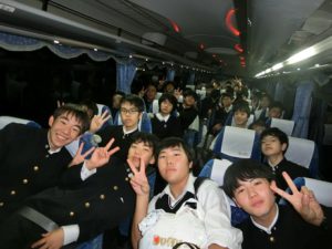 松山空港から学校へ向かうバスの中まで元気いっぱいでした。