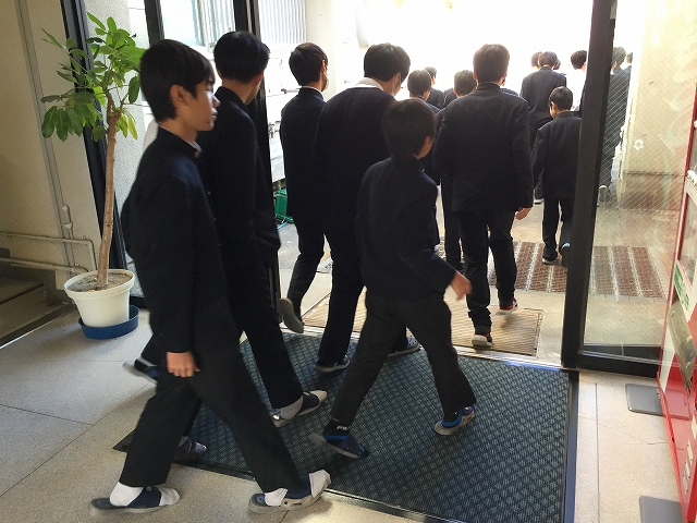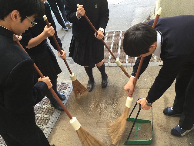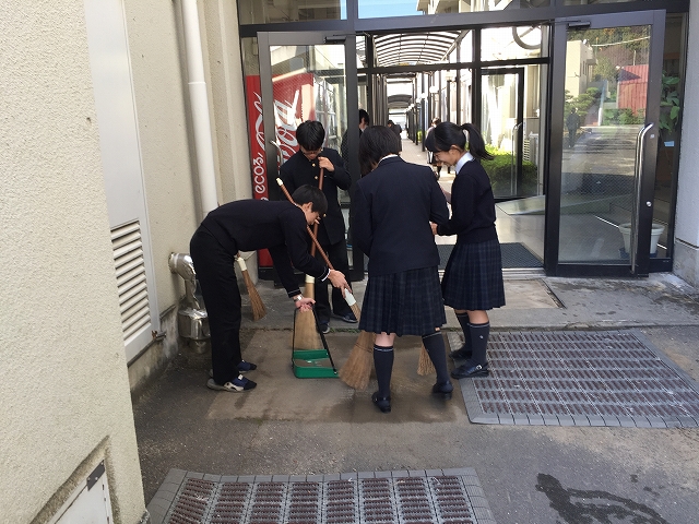 今月のとある日の全校清掃の時間に、高校部中庭の出入り口を見てみました。