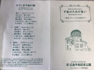 11/23(土)~11/26(月)の4日間,教皇フランシスコが来日されました。愛光ではカトリック学生の会が11/24(日)広島で行われた平和のための集いに参加しました。