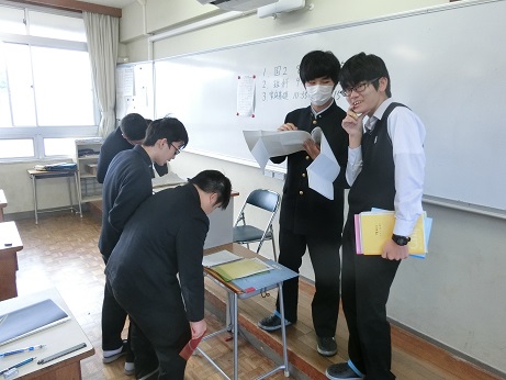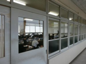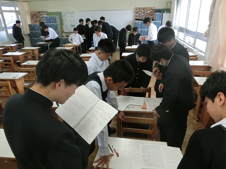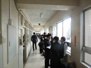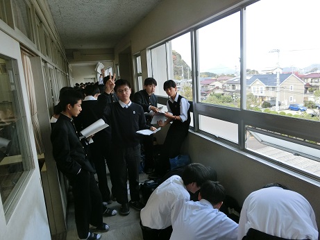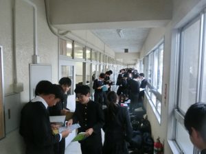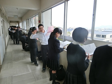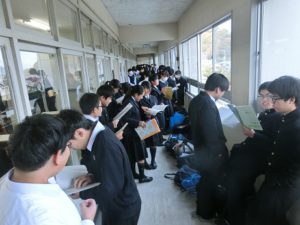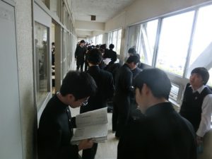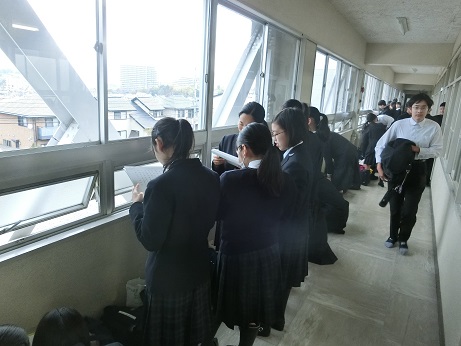 休み時間は再び廊下で、次の試験のチェックを怠りません。