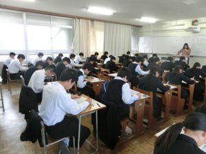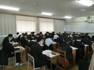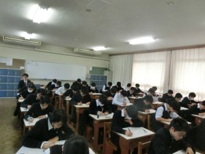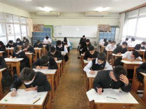 そして、8:30になると朝礼が始まり、試験が配られます。