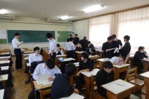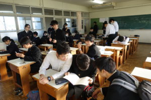 昼食後も模試は続きます。センター試験まで頑張れ,高三生。
