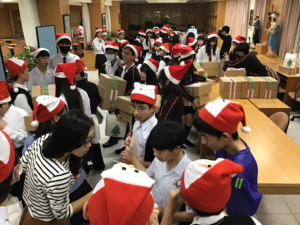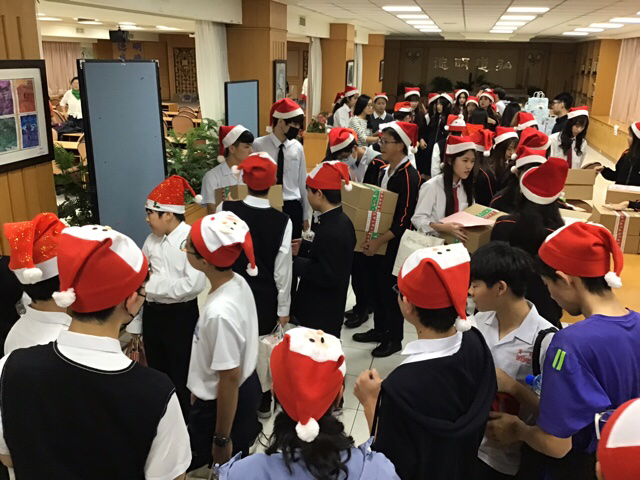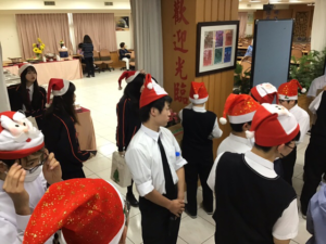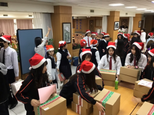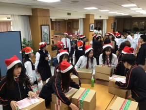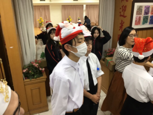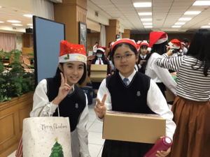 昼休みに、クリスマスに合わせてキャンディーを配りました。校内を周り、道明の生徒会役員と一緒に皆さんにキャンディー配りをしてきました。