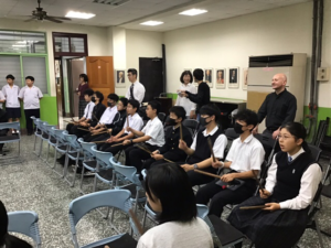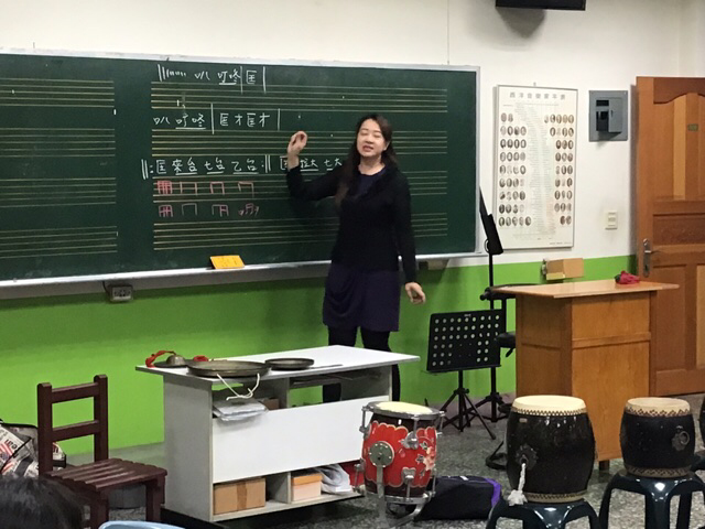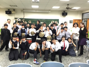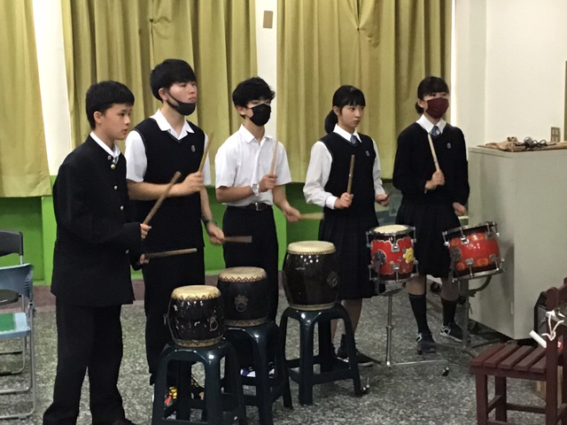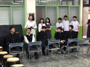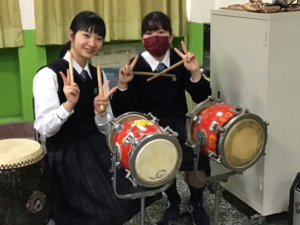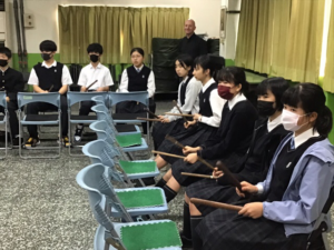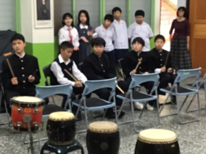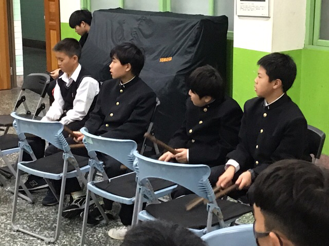 みんなバチを持っていますね。そうです太鼓の授業です。