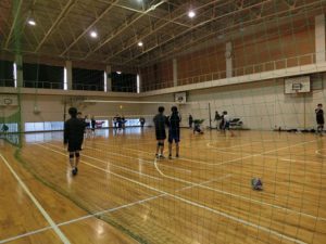 体育館でもバトミントン部とバレー部が元気に活動中。