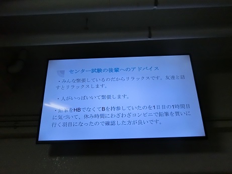 デジタルサイネージでは、先輩からのいろいろなアドバイスが流れています。