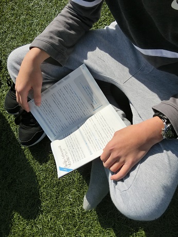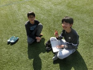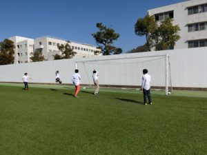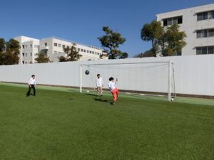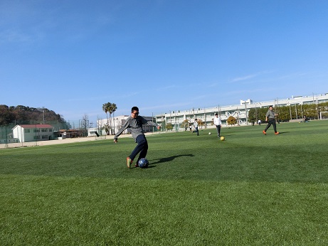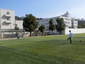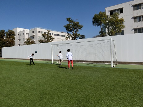 中3生も勉強の合間にボールを蹴って息抜きです。