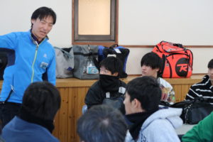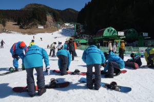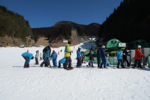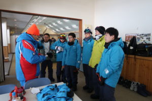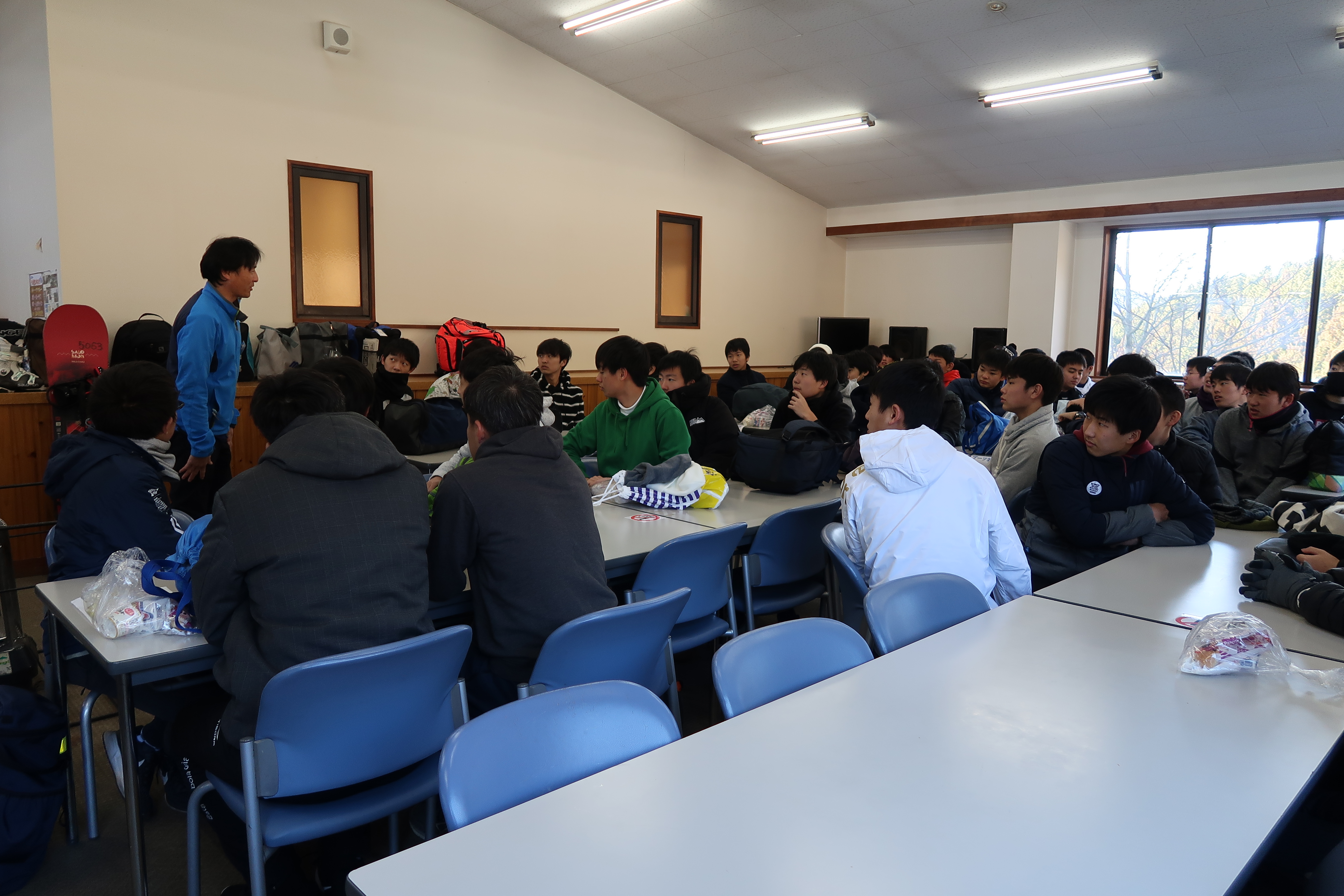 寮からバスで久万スキーランドへ行き、まずは施設の方から注意事項などの話を聞きました。