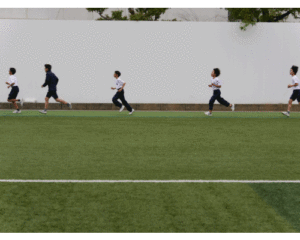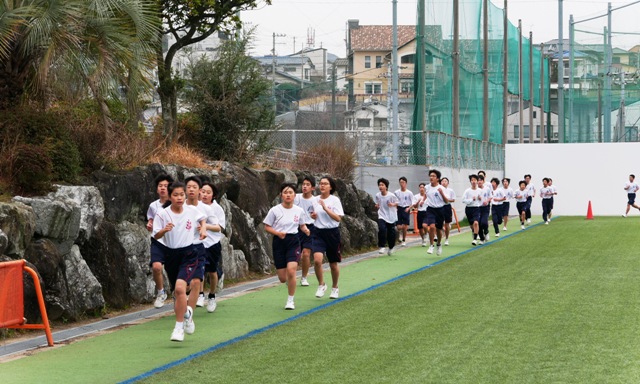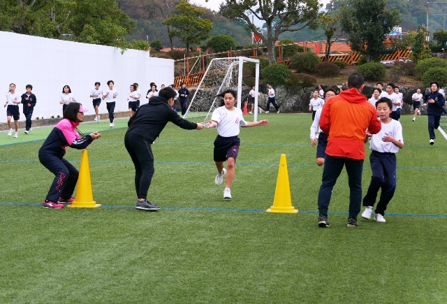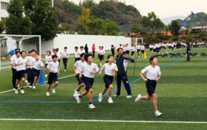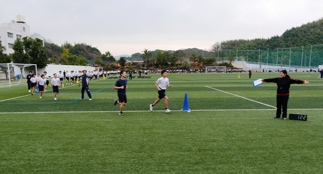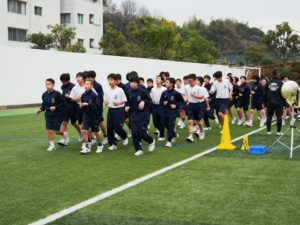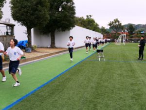 クラスごとに、軽くジョギングをして、身体を慣らします。