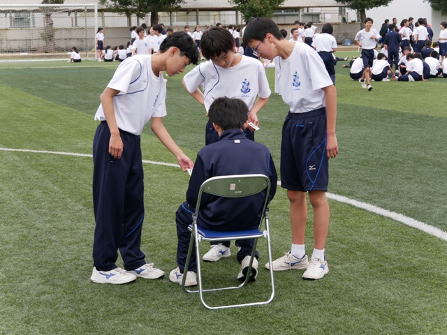 ゴール後の中1生。力を出し切って、ぐったりしているようです。